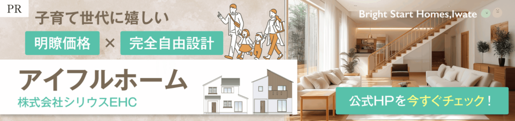 岩手で注文住宅を検討していると、アイフルホーム(株式会社シリウスEHC)が自分たちに合うのか、価格の見え方自由設計のしやすさ土地探しへの対応力まで含めて知りたい方は多いのではないでしょうか。